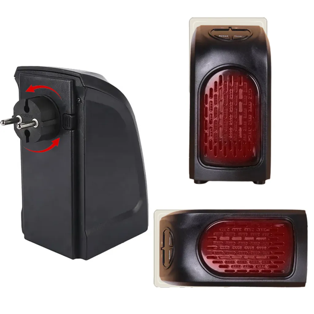 350W Steckdosen Heizlüfter Mini Heizung Elektroheizer Keramik Heizgerät Energiesparend Lufterhitzer Plug Heater Energie Sparen 220V Schwarz Retoo