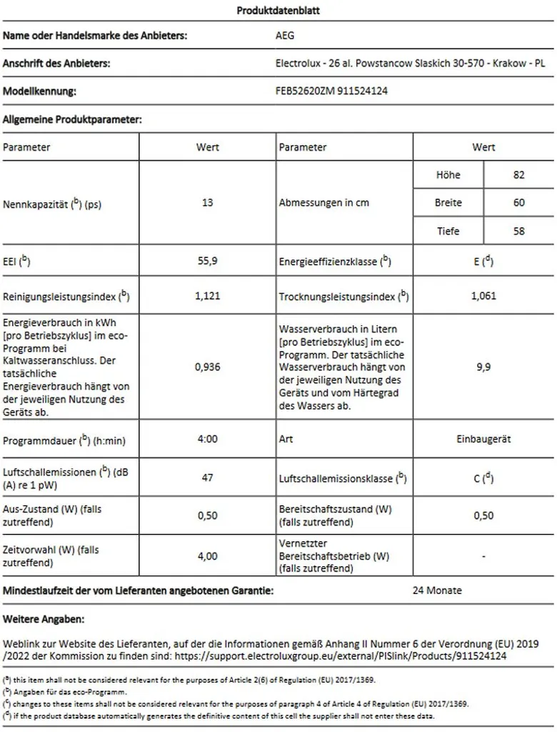 AEG – FEB52620ZM – Integrierbarer Geschirrspüler – Edelstahl