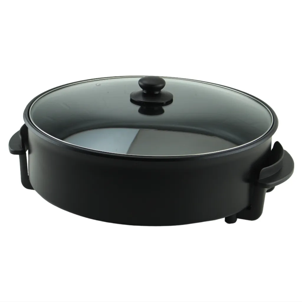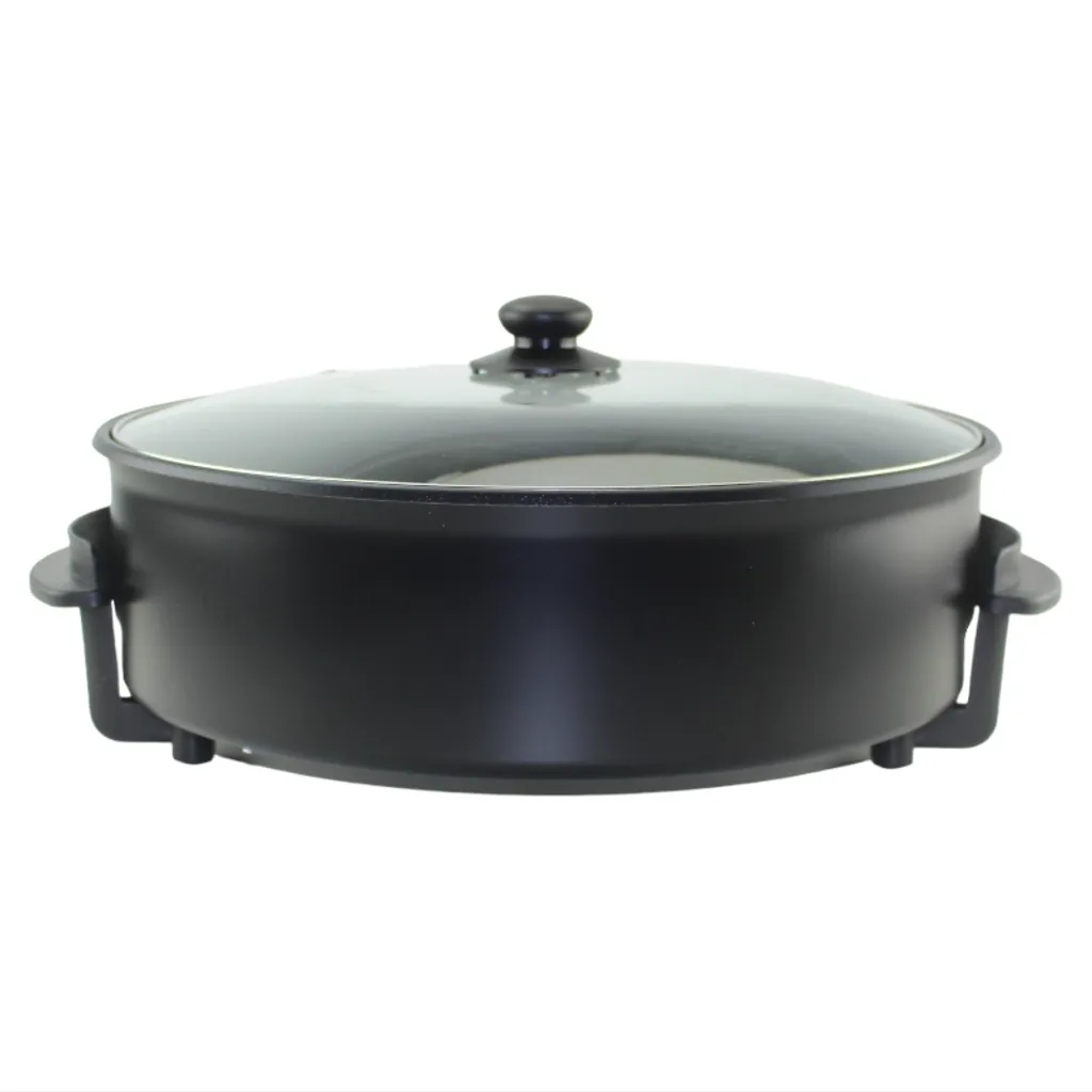 Akkaya Kaya Mutfak Pizzapfanne Bratpfanne Multifunktionale Pfanne Abmessung 42 X 9 Cm Regelbarer Thermostat Antihaftbeschichtung 1500 Watt, Farbe:SCHWARZ
