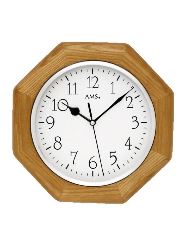 AMS 5512 Wanduhr Funk Funkwanduhr Analog Holzrahmen Eiche Farben Achteckig