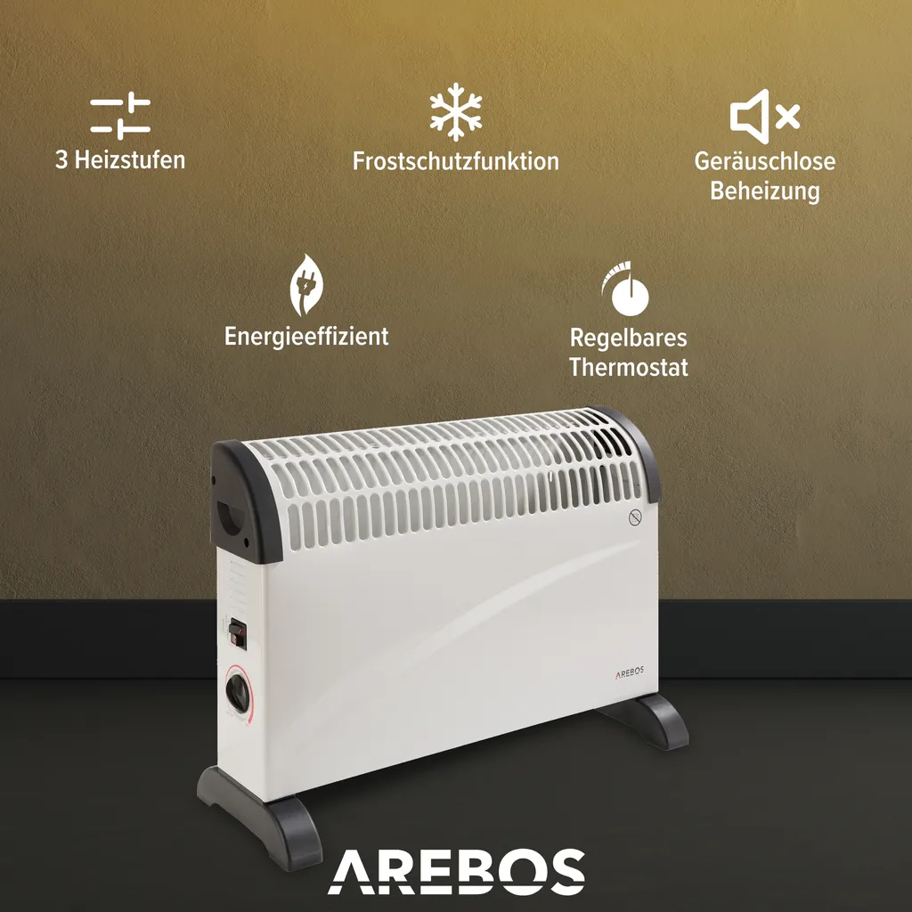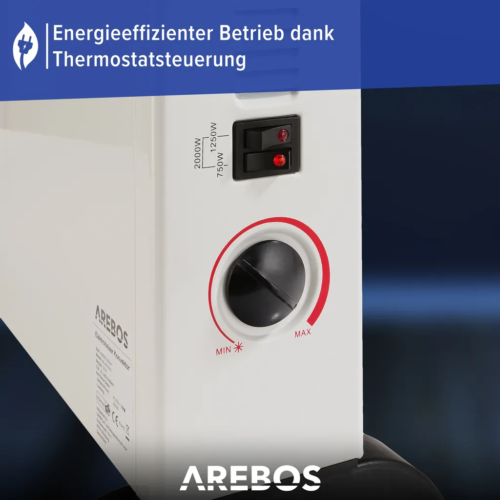 AREBOS Elektroheizer, Konvektor, 2000 Watt, Thermostat, Frostwächter-Funktion , Mit Standfüßen Oder Zur Wandmontage, Elektrische Konvektorheizung(Standard)