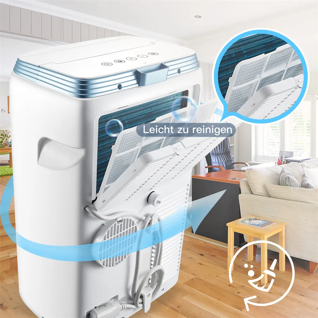 Fangqi Mobiles Klimagerät Mit Schlafmodus Und Timerfunktion, Kühlgebläse, Mit Fernbedienung, Manuelle Steuerung, 3-in-1-Funktion (Kühlen, Entfeuchten, Lüften), Mit Abluftrohr, Umweltschutz Und Energieeinsparung, Energieeffizienzklasse A, R290PS 9000 BTU, Unterseite Der Maschine Mit Rädern, Leicht Zu Bewegen, Geeignet Für Zuhause, Büro