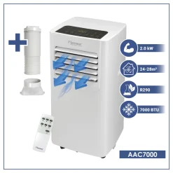 Bestron Mobile Klimaanlage, Klimagerät Für Räume Bis 28m², Kühlleistung 2,1 KW Mit Umweltfreundlichem Kühlmittel, 7.000BTU/h, Farbe: Weiß