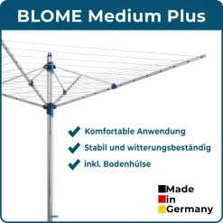 Blome Wäschespinne Alustar 50 – Wäscheständer Inkl. Bodenhülse Zum Eindrehen, Germany