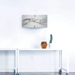 ARTland Wanduhre, Gebogen Quarzuhr – Schwarzer Zeiger Braune Abstrakte Welle Größe: 50×25 Cm
