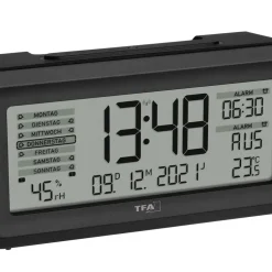 TFA Dostmann TFA Wecker, Funk, Digital, Anthrazit, Mit Beleuchtung, Datum Und Temperatur