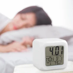 YisibaihTao Bunter Wecker, Quadratische Uhr, LED Beleuchtung, Leuchtender Farbwechsel, Kleiner Wecker Mit Temperaturanzeige Und Datum