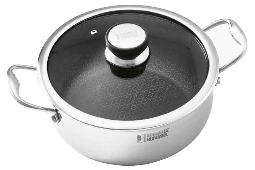 HENSSLER Cooking POT Kochtopf Inkl. Deckel, Edelstahl, 24 Cm Durchmesser, Induktionsherd-geeignet, Antihaftbeschichtung