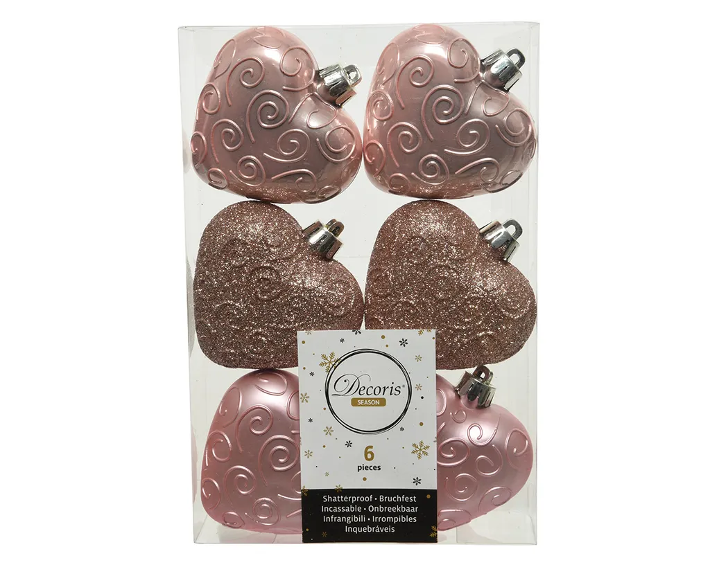 Kaemingk Bruchfeste Weihnachtsanhänger In Herzform Rosa 7 Cm Aus Kunststoff – 6er Set