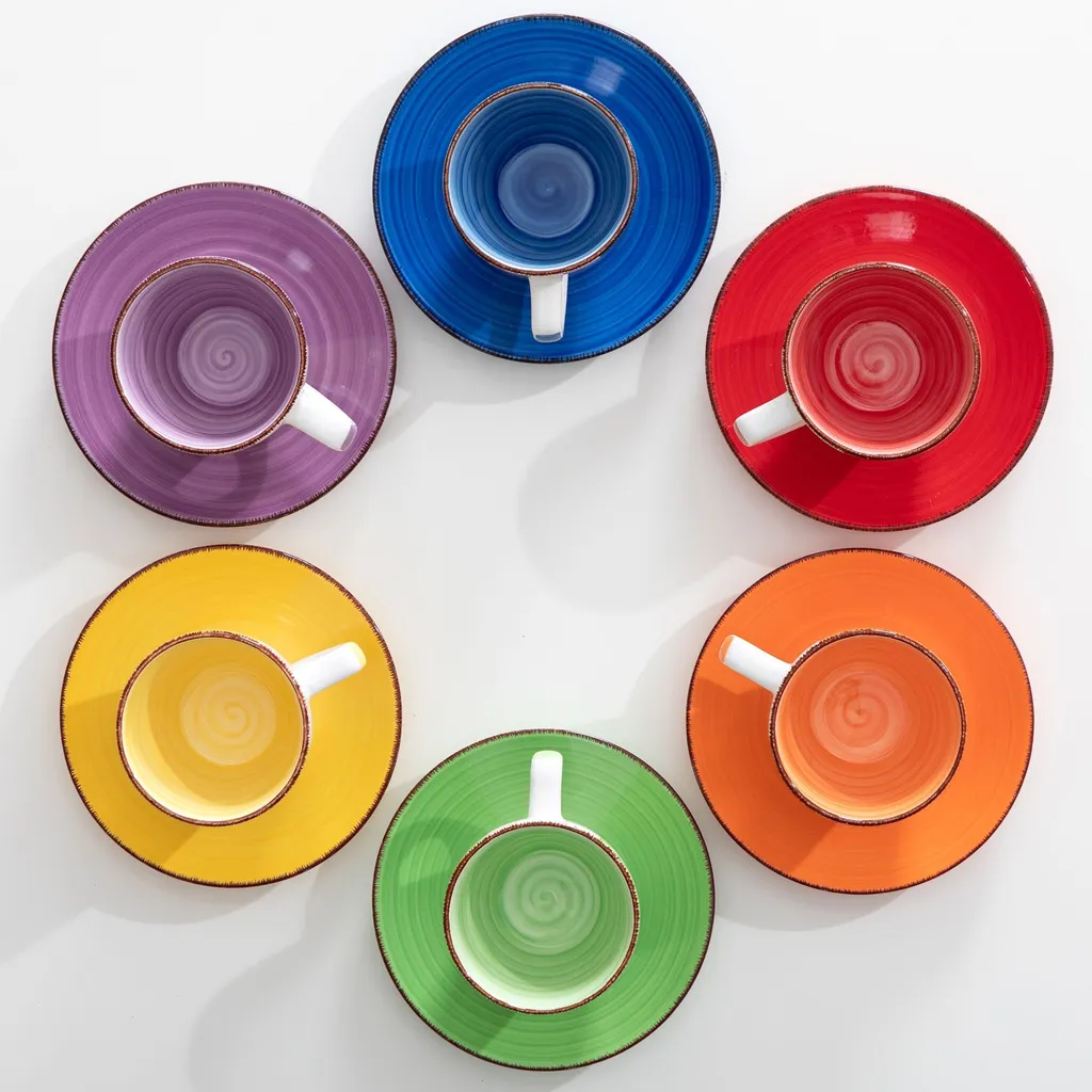 Kaffeeservice Steinzeug, Vancasso BONITA 12 Teiliges Kaffeeset, Cappuccino Tassenset Für 6 Personen, Tassen Und Untertassen