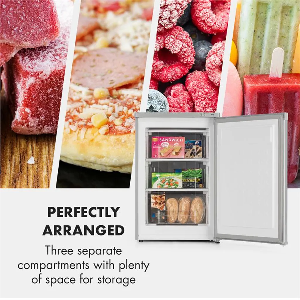 Klarstein Garfield XXL Gefrierschrank , , 81 Liter Gesamtvolumen , 3 Durchsichtige Boxen , Thermostat Mit 3 Stufen , Höhenausgleichende Füße , 39 DB , Silber