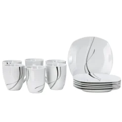 Van-Well Van Well Frühstücksservice Silver Night, 12tlg 6 Personen, 6 Kaffeebecher + 6 Teller, Linien-Dekor