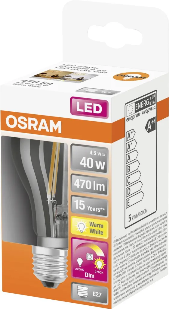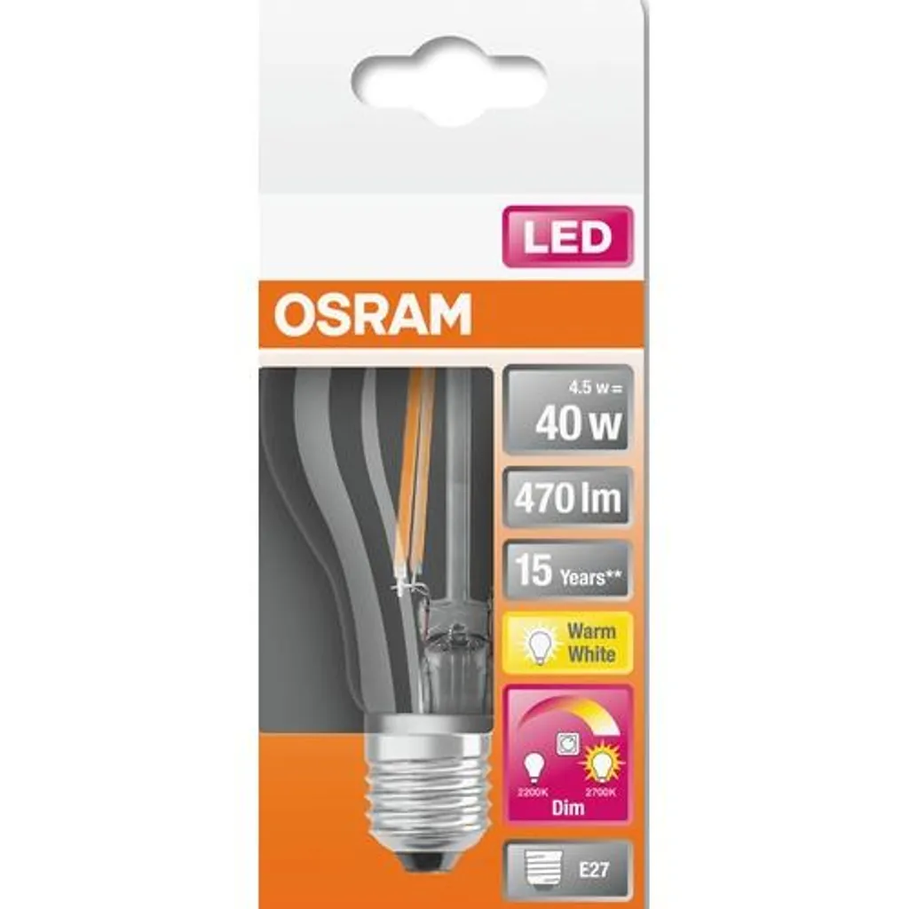 Osram LED Filament Leuchtmittel Birnenform A60 4,5W = 40W E27 Klar GlowDim Warmweiß 2200K-2700K DIMMBAR