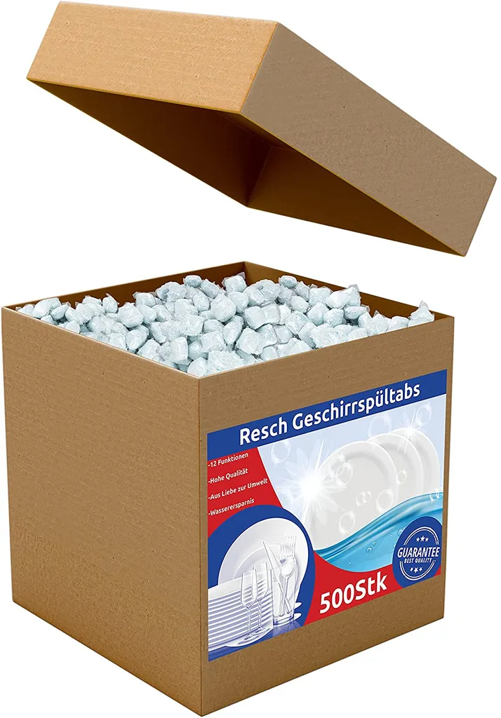 RESCH CLEANIX Spülmaschinentabs Ohne Plastik – All In One | 500 Stück (9 Kg) | Phosphatfrei Tabs | Geschirrspültabs Wasserlösliche Folie | Spültabs Spülmaschine