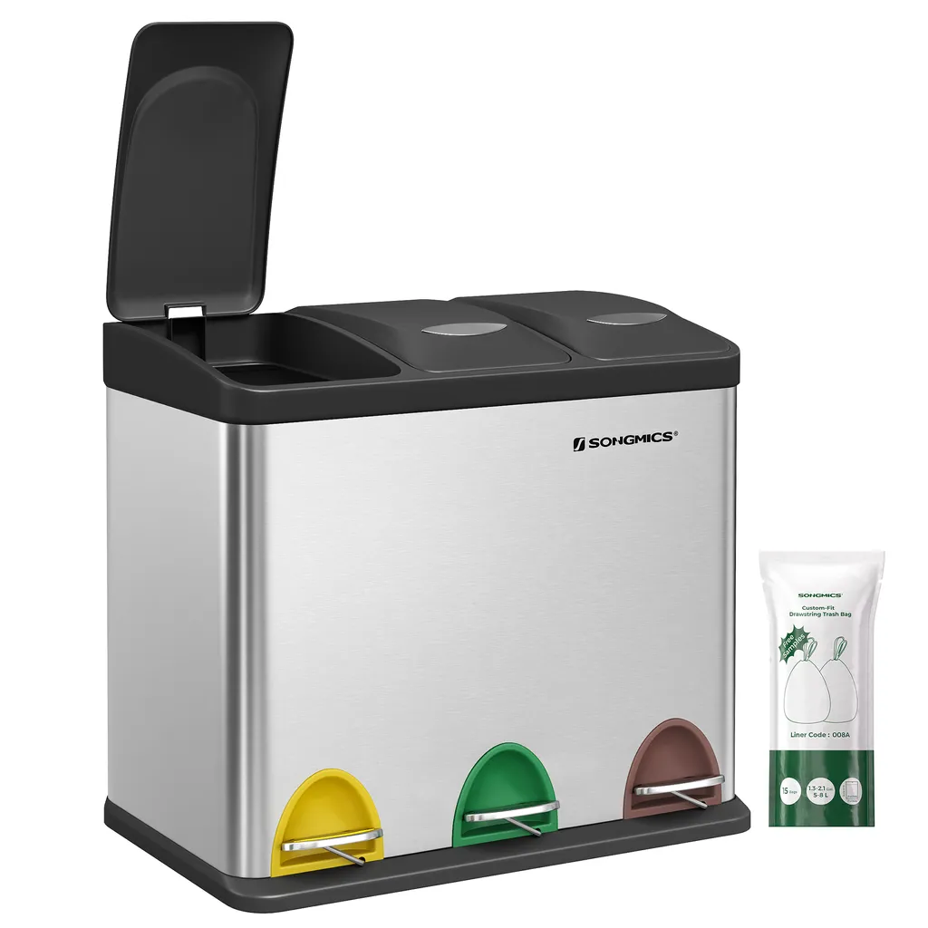 SONGMICS Mülleimer 24L, Edelstahl Abfalleimer Mit Inneneimer 3 X 8L 3-in-1Treteimer Trennsysteme LTB24L