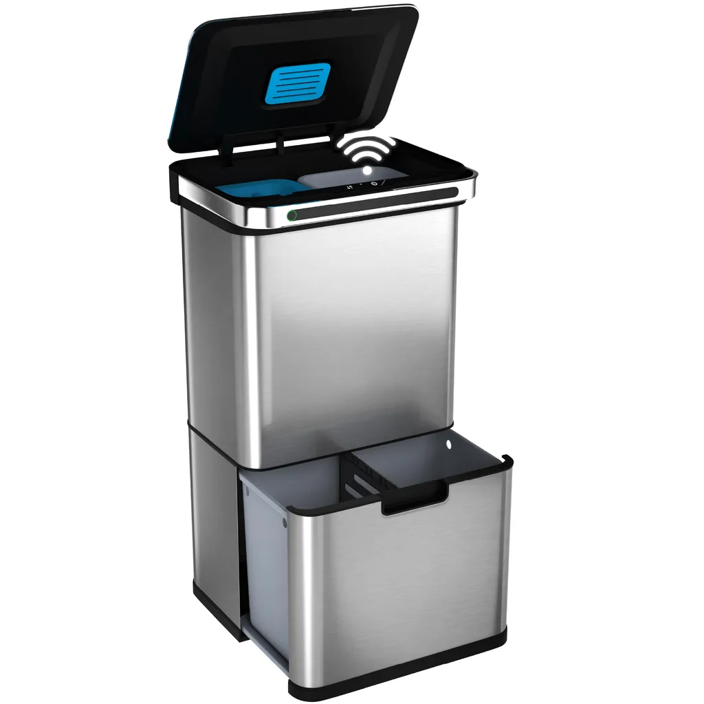 Stangvollby HALDEN Sensor Mülleimer – 60L – 4 Fächer – Edelstahl – Luftfilter – Abfallbehälter – Abfalleimer – Abfalltrennung Mülleimer