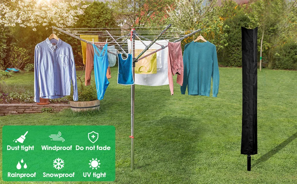 Wolketon Waeschespinne Schutzhuelle Mit Hochdichter Oxford PVC-Beschichtung Mit Reissverschluss & Kordelzug Wasserdichte Stoff Huelle Fuer Waeschespinne Abdeckung Extrem Wasserabweisendes 168 X 28cm Schwarz